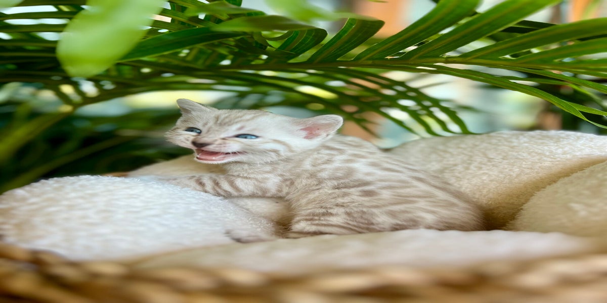 Sono tutti nella colorazione Snow Lynx, una variante affascinante e non così comune: nascono quasi completamente bianchi, con occhi azzurri, e con la crescita il mantello si trasforma, facendo emergere sempre più i disegni e i contrasti.